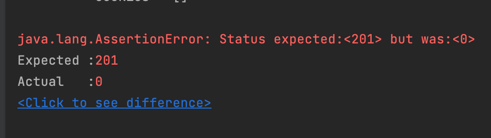 - java.lang.AssertionError: Status expected:<201> but was:<0> 오류 발생