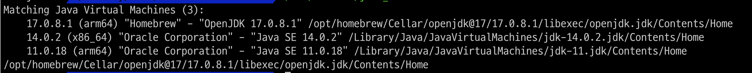 - 현재 내 맥에는 11, 14, 17 버전이 설치되어 있다.